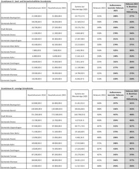 Zum Zeitpunkt der Hebesatzermittlung im Herbst 2024 lagen teilweise nicht alle notwendigen Daten vor, so dass auch Schätzungen und Rundungen in die Ermittlung des neuen Hebesatzes eingeflossen sind. Jede Gemeinde kann im Rahmen ihrer Finanzautonomie den Steuerhebesatz abweichend vom aufkommensneutralen Hebesatz festsetzen. Die für das Haushaltsjahr 2025 festgesetzten Hebesätze sind in der Darstellung deshalb ergänzt. Die jeweiligen Satzungen, mit denen die Hebesätze festgelegt wurden, finden Sie unter: https://www.buetzow.de/ unter Ortsrecht der jeweiligen Gemeinde. In allen amtsangehörigen Gemeinden konnte eine Absenkung der Hebesätze für die Grundsteuer A und B vorgenommen werden. Für die Stadt Bützow wurde zur Berechnung des neu festzusetzenden Hebesatzes das Planaufkommen für 2025 herangezogen, da im Rahmen der Haushaltsplanaufstellung im Jahr 2023 für den Doppelhaushalt 2024 und 2025 zur Einnahmensicherung bereits ein Anstieg des Grundsteueraufkommens sowohl für die Grundsteuer A als auch für die Grundsteuer B festgeschrieben wurde. Für die Stadt Bützow wurde der Hebesatz für das Jahr 2025 für die Grundsteuer A abgesenkt, für die Grundsteuer B musste eine Erhöhung erfolgen.