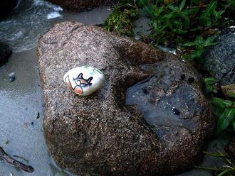 Tagespflege-Mitarbeiterin Anja Walter legte einen Wanderstein bei einem Kurzurlaub in Plön ab. Wer ihn wohl gefunden hat?