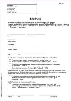 | Übermittlung von Daten an die öffentlich-rechtliche Religionsgesellschaft, die über die für Zwecke der Steuererhebung erforderlichen Daten hinausgehen |