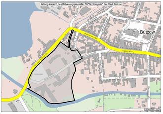 Das Plangebiet liegt westlich des Stadtzentrums der Stadt Bützow und umfasst die historische Bebauung mit Krummen Haus, ehemaligem Amtsgericht und dem Bützower Schloss sowie den ergänzenden Bebauungen des Verwaltungsgebäudes im Norden, der Grundschule mit Freizeittreff und dem früheren Mädchenpensionat, das heute Bestandteil des Pflegeheimes am Schloss ist. Damit ist die Bebauung in diesem Bereich abgeschlossen. Es sind zukünftig nur noch Nutzungsänderungen oder Um- und Anbauten zu erwarten. Die Zulässigkeit aller Bauvorhaben im jetzigen Geltungsbereich richtet sich nach Aufhebung des Bebauungsplanes zukünftig nach § 34 Baugesetzbuch (Bauen im Innenbereich). Es sind Vorhaben zulässig, die sich nach Art und Maß der Bebauung in die Umgebung einfügen und deren Erschließung gesichert ist.