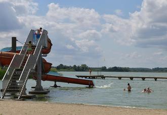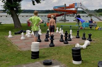 Auf dem großzügigen Gelände gibt es neben der Möglichkeit zu Baden und zu Schwimmenm, einen großen Spielplatz mit Rutschen und diversen Klettergeräten, ein Volleyballfeld, es kann Fußball gespielt werden und man kann sich im Riesenschachspiel ausprobieren.