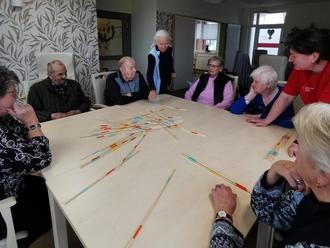 Wahrnehmung, Aufmerksamkeit, Orientierung und Kreativität werden daher auf verschiedenste Weise in der DRK-Einrichtung gefördert. „Quizspiele, Lückentexte, Gedichte und Reime finden darum auch regelmäßig Raum in unserem Alltag“, sagt Nicole Beese. Zudem machen sich die Mitarbeitenden die Freude der Tagesgäste an Gesellschaftsspielen zu Nutze und fördern dies in regelmäßigen Spielerunden. Im letzten Jahr haben sich in der Einrichtung Spielgruppen für Mensch ärgere Dich nicht, Rommé und Co. gebildet. Auch neue und außergewöhnliche Spiele werden von den Tagesgästen gerne ausprobiert.