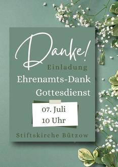 | 10:00 Uhr | Bützow Ehrenamts-Dank-Gottesdienst mit KirchenKaffee (Pn. Levetzow, Vikarin Meyns, P. Fiedler) |