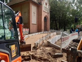 Gerade war es noch eine Baustelle. - Inzwischen ist er fast fertig: der barrierefreie Zugang zur Friedhofskapelle Bützow.