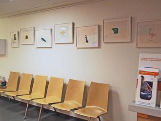Im Erdgeschoss, im Wartebereich des Bürgerservice finden Sie die minimalistischen Tierillustrationen von Frau Claudia Kirschenbaum alias Cherrytree_creation aus Demen.