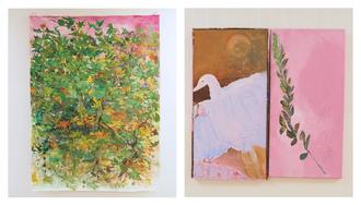Alle Arbeiten sind mit Acrylfarben auf Nessel gemalt und dürfen gern auch gekauft werden.