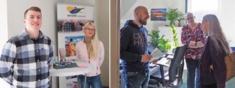Die Auszubildenden im 1. Lehrjahr, Herr Dzewas und Frau Dehl informierten interessierte Besucher/innen (1. Bild v.l.n.r.), sowie der Auszubildende, Herr Warncke (2. Bild li) und Frau Winkelmann aus der Abteilung EDV (2. Bild Mitte), die einer Bürgerin Fragen beantworteten