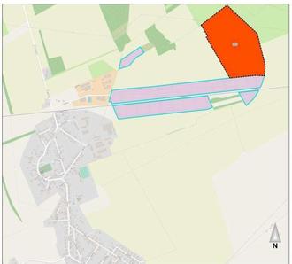 Plangebiet - rot gekennzeichnet (vorhandene Photovoltaikanlagen rosa gekennzeichnet)