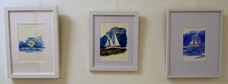 Sie finden die überwiegend maritimen Aquarelle zu den Sprechzeiten im 1. OG, zwischen Altbau und Neubau (beim Sekretariat) und auf dem Weg zum Bauamt.