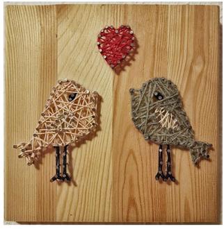 Dann wollen wir gemeinsam ein sogenanntes Fadenbild erstellen. Alles was wir dazu brauchen, haben wir da. Wenn Sie mögen können Sie sich gern einen eigenen kleinen Hammer und Zange mitbringen.