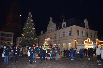 Traditionell fand am 3. Adventswochenende der Weihnachtsmarkt rund um das Demminer Rathaus statt. Eröffnet wurde der Markt mit einem Trompetensolo von Klaus Martens und mit schönen musikalischen Programmen von der Kita „Forscherkids“ sowie vom Chor der Grundschule „Heinrich Zille“. Auch der Weihnachtsmann war vor Ort und erfreute die Kinder mit kleinen Geschenken. Die Singegruppe der IB-Kindertagesstätte „Südmauer“ hat ein tolles, musikalisches Programm mit Tanzeinlagen und Gedichten am Freitagnachmittag aufgeführt, wofür sie viel Applaus erntete. Zahlreiche Vereine, Schulklassen und Händler präsentierten sich und haben ihre Waren angeboten. So zog der Duft von Glühwein, gebrannten Mandeln, Bratwurst und Mutzen an allen Tagen über den Demminer Marktplatz. Besonders das beleuchtete Riesenrad war ein echter Hingucker. Die jüngsten Besucher hatten viel Freude beim Losen, Ballwerfen und Karussell fahren. Eisbahnträume gingen wieder im Festsaal des Rathauses in Erfüllung. Dort hatte Dietmar Bigeschke wieder eine wunderschöne Eisenbahnausstellung im weihnachtlichen Ambiente aufgebaut. Verschiedene Künstler traten auf der Bühne auf, ob Groß oder Klein es war für jeden Geschmack etwas dabei. So gab es zum Beispiel Spiele von DJ Heiko, das unterhaltsame Kinderprogramm „Hollys Zauber der Weihnacht“ sowie den singenden Weihnachtsmann. Die Demminer Blasmusik sorgte am Freitagabend für einen gelungenen Abschluss. Am Samstag und Sonntag sorgte wieder Dave Schwarz für reichlich Humor auf der Bühne, wohingegen Yvi & EYk sowie die Schlagersänger Danny Buller und Hans-Jürgen Beyer mit bekannten Liedern durch das Programm führten. Die bunte Lichterparade durch die Demminer Innenstadt mit rund 80 geschmückten Fahrzeugen bescherte dem Weihnachtsmarkt einen schönen Ausklang. Die Hansestadt Demmin bedankt sich bei Allen, die sich am diesjährigen Weihnachtsmarkt beteiligt und zum Gelingen beigetragen haben.