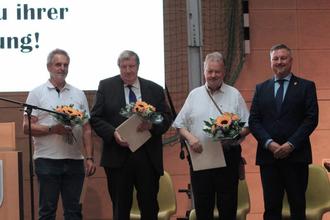 Für ihr langjähriges kommunalpolitisches Engagement zeichnete Bürgermeister Thomas Witkowski im Namen des Städte- und Gemeindetages Herrn Eckhardt Tabbert, Herrn Bernd Koltz und Herrn Uwe Steinbrenner aus.