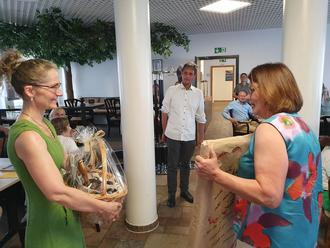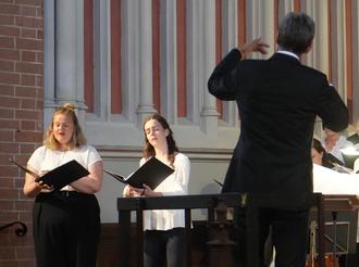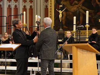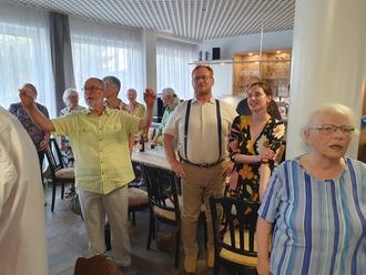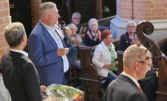 Es war schon ein besonderes Wochenende für die Sängerinnen und Sänger der Demminer Kantorei: 3 Tage lang, vom 20. bis zum 22. Juni 2025, feierten sie auf ganz unterschiedliche Art und Weise ihr großes Jubiläum: der Chor wurde 30! Im Oktober 1995 trat der heutige KMD Prof. Thomas K. Beck die Nachfolge des damaligen Kantors Martin Haerter in der Demminer Kirchengemeinde an. Kurz darauf wurde aus dem bisherigen Kirchenchor die Kantorei gegründet, die von etwa 25 Mitgliedern auf heute rund 100 angewachsen ist. Schon am 4. April 1996 gab es das erste Konzert - die „Lukaspassion“ von Georg Philipp Telemann. Jährlich folgten 2 bis 3 Aufführungen großer Werke. Hinzu kamen Auftritte zu besonderen Höhepunkten und Feiertagen in der St. Bartholomaeikirche, aber auch überregional in anderen Städten oder in sozialen und medizinischen Einrichtungen der Stadt, wie dem Kreiskrankenhaus. Und so gab es allen Grund zur Freude und zum Rückschau-Halten. Am 20. Juni wurde zu einer Abendmusik in Demmins große Stadtkirche eingeladen. Dort erklangen Werke von Haydn, Jenkins, Mendelssohn Bartholdy, Händel und Schütz, aber auch von Thomas K. Beck selbst. Zwischendurch spielte Robert Schulz die „1. Sonate f-moll für Orgel“ von Mendelssohn Bartholdy. Die Begeisterung der zahlreichen Zuhörerinnen und Zuhörer war sehr groß, so dass nach lang anhaltendem, stehendem Applaus auch noch der Irische Segen als Zugabe die Gäste erfreute. Bürgermeister Thomas Witkowski ließ es sich nicht nehmen, persönlich zu danken und zu gratulieren. Er würdigte das engagierte Wirken der Kantorei vor Ort und weit darüber hinaus und das vertrauensvolle Miteinander von Kantor und Chormitgliedern. „Das soll auch die nächsten Jahrzehnte ebenso bleiben!“ Die Hansestadt werde die Kantorei als bedeutsamen Kulturträger natürlich weiterhin unterstützen. Auch der Präsident der Stadtvertretung, Eckhardt Tabbert, bedankte sich im Nachgang für die Abendmusik. „Es war so ein berührendes und tolles Konzert. Diese Mehrstimmigkeit und dazwischen das Orgelspiel - man bekam oft Gänsehaut. Wir freuen uns schon auf die nächste Veranstaltung. Den Sängerinnen und Sängern sowie dem Dirigenten ein ganz großes Lob!“ Der 21. Juni 2025 begann mit einem Orgelkonzert für die Kantorei, aber ebenso für interessierte Gäste. Benjamin Jäger, ehemaliger „Kantorianer“ und heute als Kirchenmusiker in Rostock tätig, gratulierte mit einem „Improvisationskonzert - von Leinwand und Mattscheibe“. Die Königin der Instrumente erklang einmal ganz anders, als gewohnt. Mal „intergalaktisch“, dann wieder „maritim“. Und zum Schluss wurden alle Anwesenden zum Mitsingen des Beatles-Songs „Yellow Submerine“ aufgefordert, was sie auch gerne taten. Und als die Melodie zum „Happy birthday to you“ wechselte, wurde auch noch laut mitgeklatscht, denn der Kantor hatte an diesem Tag auch noch Geburtstag! Sichtlich gerührt, dankte er für dieses außerplanmäßige Ständchen. Danach ging es zum Stadthafen, wo die „Hansestadt Demmin“ bereits wartete und zu einer Rundfahrt auf der Peene einlud. Nach einem Erinnerungsfoto ging es bei herrlichem Sonnenwetter los. Kaffee und Kuchen schmeckte an Bord vorzüglich und mit Musik, vielfältigen Gesprächen und Genießen der schönen Landschaft verging die Zeit wie im Fluge. Wieder festen Boden unter den Füßen, ging es zur „Demminer Mühle“ zum gemeinsamen Abendessen. Kirchengemeinde und Orgelförderverein hatten das reichhaltige Buffet gesponsert zum Dank für den vielfältigen ehrenamtlichen Einsatz der „Kantorianer“ in drei Jahrzehnten. Zunächst aber gratulierten diese aber mit Gesang und Beifall ihrem „Chef“, KMD Prof. Thomas K. Beck, zum 56. Geburtstag. Im Alter von 26 Jahren hatte er das Amt des Kantors übernommen. In einem von allen Mitstreitern unterschriebenen Geburtstagsgruß hieß es u.a. „Du hast mit uns vom 42. Psalm über das Mozart-Requiem bis zur h-moll-Messe von Bach ein riesiges Repertoire an Kirchenmusik einstudiert und zur Aufführung gebracht. Wir hatten während der Konzerte Gänsehautmomente in unserer wunderschönen Kirche, bei denen die Mühen der ersten beschwerlichen Proben vergessen waren. Nicht nur musikalische Laien, auch die Orchestermusiker, Solisten und professionellen Zuhörer loben die Qualität Deiner Kantorei. Du schaffst es in einer einmaligen und liebenswerten Art und Weise, das Beste aus uns herauszuholen. Und jedem gibst Du das Gefühl, unentbehrlich zu sein. Vielen bist Du auch in persönlichen Krisen ein Fels in der Brandung. Für all´ das danken wir Dir von Herzen!“ Darüber hinaus durfte sich der Kantor über ganz besondere Geschenke freuen: er bekam das von Annkatrin Rabe gemalte Bild „Stabat Mater“, das den Demminer Kirchenmusiker zeigt, „wie er mit Hingabe und Leidenschaft singt und dirigiert“. Außerdem gab es u.a. ein von Claudia von Oltersdorff-Kalettka liebevoll gefertigtes Keramikservice mit Motiven aus dem Kantoreileben. Und ein Gutschein für den Einkauf in einem Gartencenter gehörte ebenfalls dazu. Der gemeinsame Abend war so schön, dass man ihn kaum enden lassen wollte. Ein Festgottesdienst am Sonntag, dem 22. Juni 2025, in welchem Pröpstin Kathrin Kühl und Pastor Martin Wiesenberg nochmals Prof. Beck sowie allen Sängerinnen und Sängern, aber auch dem Kinderchor und der Jugendkantorei sowie dem Gemeindesingkreis herzlich dankten, bildete dann den Abschluss des vielseitigen Jubiläums-Wochenendes. Die Jugendkantorei zeigte, begleitet am Klavier von Georg Wagner, ihr Können mit Werken von Rutter, Kitson und Chilkott und erhielt ebenfalls viel Beifall für den gekonnten Auftritt. Pastor Martin Wiesenberg hatte außerdem noch ein besonderes Dankeschön und Geburtstagsgeschenk für den Chorleiter und Kantor mitgebracht: Er überreichte dem Dirigenten einen Dirigenten aus Keramik, der künftig ebenfalls den Garten der Familie Beck verschönern soll. Und er dankte für so viel Einsatz und mus