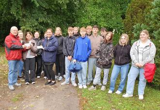 Euro für die Arbeit des Volksbundes. Außerdem übergaben sie ein Dankschreiben und 20,00 Euro von ihren Mitschülern aus der Klasse PL 8, die bereits im Mai gemeinsam mit Volksbundmitgliedern einen Projekttag auf dem Friedhof absolviert hatten. Mit einem herzlichen Dankeschön und besten Wünschen für die bald beginnende Ferienzeit wurden die Jugendlichen und ihre Betreuerinnen anschließend verabschiedet, bevor der Regen wieder einsetzte.