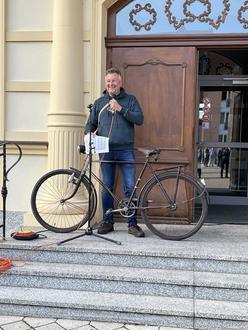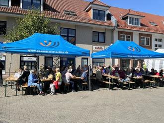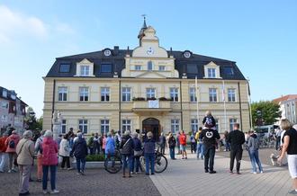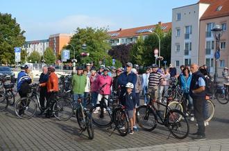 Am 2. September konnte der Bürgermeister Thomas Witkowski den 27. Stadt-wandertag auf dem Marktplatz eröffnen. Das Stadtoberhaupt hatte ein circa 70 Jahre altes Fahrrad aus dem Fundus des Museums mitgebracht und es den circa 150 Wanderer und Radler vorgeführt. Nach der Begrüßung und den Erläuterungen zum Verlauf, begannen bei herrlichem Sonnenschein die Wanderungen und die Radtouren, die von Mitarbeiterinnen und Mitarbeitern der Stadtverwaltung geführt und begleitet wurden. Die Wanderer gingen in diesem Jahr zum Halbmond, zur Flüsterbank und über den Mühlengraben zur Kirchhofstraße, wo das Kirchhofstraßenfest eröffnet wurde. Wer anschließend noch an der großen Route teilnehmen wollte, schloss sich den Wanderern in Richtung Schwanenteich an. Hier verlas Herr Wolfram Besch eine Geschichte zum Schwanenteich und Umgebung, welche er über Demmin für eine Zeitschrift geschrieben hatte. Es wurde über die Treptower Straße und den Marienhain zum Fest zurückgewandert. Die Radler beteiligten sich wieder an den traditionellen Radtouren. Die Haupttour führte in Richtung Drönnewitz über Wotenick, Nossendorf, Toitz und Seedorf nach Demmin. Die Teilnehmer der Familientour kürzten die Route ab und fuhren von Wotenick über Seedorf nach Demmin. Unterwegs gab es für die Wanderer und Radfahrer eine vitaminreiche Versorgung mit Obst und Getränken. Alle Teilnehmer freuten sich auf ein gemeinsames Mittagessen und auf das Kulturprogramm in der Kirchhofstraße. Die Peene Werkstätten GmbH hat das 5. Kirchhofstraßenfest organisiert, sodass die Hansestadt Demmin das Fest wieder als Ziel des Stadtwandertages gewählt hatte und sich am Kulturprogramm beteiligte. Zu Beginn sang der „Fritz-Reuter-Chor Stavenhagen“ und sorgte für gute Stimmung. Nachdem die Peene Werkstätten GmbH für das leibliche Wohl aller Stadtwanderer sorgte, trat der Künstler Benjamin Nolze mit seinem Programm „Lach mal wedder“ auf. Mit plattdeutschem Gesang und witzigen Anekdoten unterhielt er die Besucher. Es wurde viel mitgesungen und gelacht. Für weitere musikalische Unterhaltung sorgten „Der Blonde Hans“ aus Greifswald sowie DJ Yale. Die Hansestadt Demmin bedankt sich herzlich bei allen treuen Teilnehmern und fleißigen Organisatoren des Stadtwandertages. Besonderer Dank gilt dem Feuerwehrverein Demmin e.V. für die Pausenversorgung sowie der Peene Werkstätten GmbH für die Mittagsversorgung und die gute Zusammenarbeit.
