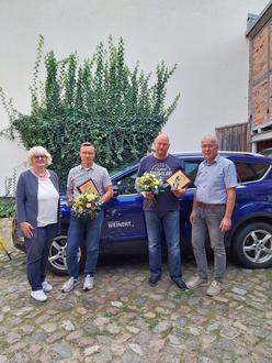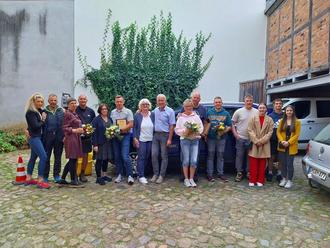 In der renommierten Demminer Firma vom Vermessungsbüro Herbert Weinert, gab es kürzlich etwas zu feiern. Der Firmenchef hatte ursprünglich sein Jubiläum bereits 2021, dies konnte aber wegen der damaligen Umstände und Einschränkungen nicht gefeiert werden. Nun hatte er mit Ehefrau Ria eine Überraschung parat und diese ist beiden definitiv gelungen. Am Firmensitz in der Demminer Lindenstraße gab es nach der freitäglichen Dienstberatung auf dem historischen Betriebsinnenhof einen kleinen Empfang. Alle Lebenspartnerinnen der Mitarbeiter waren ebenfalls geladen und die verdutzten Blicke ihrer Männer hatten sie exklusiv. Der Chef bedankte sich bei allen Anwesenden, denn ohne den familiären Rückhalt würde vieles nicht so gut laufen. Zwei Mitarbeiter bekamen in diesem Rahmen eine besondere Ehrung. Martin Lexow und Andreas Kell feiern ihre „silberne Hochzeit“ mit dem Vermessungsbüro.