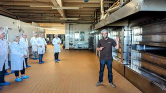 Zum Beginn der Veranstaltung stellte Geschäftsführer und Bäckermeister, Christoph Hatscher den Betrieb mit den Anfängen der Bäckerei vor, welche 1941 in Stavenhagen gegründet wurde - damals noch bekannt unter dem Namen Bäckerei Brinkmann. Die Traditionsbäckerei in 4. Generation, kann mittlerweile auf eine über 80-jährige Firmengeschichte zurückblicken. Das Team der Bäckerei besteht aus ca. 100 Mitarbeitern, darunter vier Auszubildende, welche in der Bäckerei und in den 16 Filialen und Cafés tätig sind. Besonderen Wert legt Christoph Hatscher auf das Traditionshandwerk in seiner Backstube. Denn anders als in Industrieprodukten, bestehen die Rezepturen in der Bäckerei & Konditorei Hatscher zum größten Teil aus Monokomponenten, fernab von Fertigbackmischungen. Auf die Frage wie das Unternehmen den Fachkräftemangel auffängt, nannte Herr Hatscher zwei wichtige Komponenten, die sich für Ihn als erfolgreich gezeigt haben. Zum einen hat er in der Bäckerei und Konditorei vor zwei Jahren ein neues Schichtmodell eingeführt, so dass es neben der Nachtschicht auch eine Schicht gibt, die komplett am Tag produziert. So kann die Bäckerei auch für Familien und berufstätige Mütter ein attraktiver Arbeitgeber bleiben. Weiterhin hat er sehr gute Erfahrungen mit Quereinsteigern machen können, welche die vielfältigen und abwechslungsreichen Arbeitsschritte in der Bäckerei erlernen können und so zu wichtigen Bestandteilen des Teams geworden sind. In der gesamten Bäckerei hat demnach ein Umdenken stattgefunden, um sich den aktuellen Herausforderungen zu stellen. Die seit diesem Jahr bestehende Mitgliedschaft im Regionalen Unternehmensnetzwerk möchte er außerdem nutzen, um Nachwuchskräfte zu generieren.