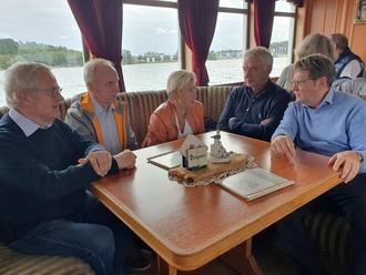 Ein weiteres Jahrestreffen der „Altmeister“ konnte am 25. September 2024 stattfinden; dieses Mal in Waren (Müritz). Um 10.00 Uhr wurde die Gruppe von Bürgermeister Norbert Möller im dortigen Rathaus empfangen. Nach einer Begrüßung durch den AG-Vorsitzenden, Bürgermeister a.D. Wilfried Block, informierte der Warener Rathauschef ausführlich über die erfolgreiche bisherige Entwicklung seiner Stadt und aktuelle Investitionen, so den Ersatzneubau für die Brücke über die Bahngleise auf der B 192. Er bekannte sich deutlich zum städtischen Gesellschafteranteil für das „Müritzeum“ und zur Finanzierung sogenannter „freiwilliger Leistungen“. Norbert Möller gab Auskunft über die Zusammensetzung der Stadtvertretung nach der letzten Kommunalwahl, den Erfüllungsstand des Haushaltsplanes und zu anstehenden Vorhaben. Anschließend konnten die Teilnehmenden, die teilweise mit Ehepartner angereist waren, während eines Spazierganges Waren auch ganz praktisch „erleben“. Nach einem leckeren Mittagessen im „Ratskeller“ ging es zum Hafengebiet, wo das Salon-Dampfschiff „Europa“ auf seine Gäste wartete. Eine zweistündige Rundfahrt auf der Müritz, durch den Eldekanal und auf dem Kölpinsee bot Erholung, Genuss der schönen Natur und zugleich Zeit für weitere Gespräche.