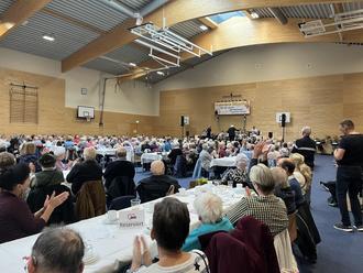 Erstaunt stellten die Moderatoren fest, dass man in diesem Jahr überpünktlich das Fest beenden kann, nachdem es in den Vorjahren Überziehungen bis zu 45 Minuten gab. Kurz nach 16.45 Uhr nahmen die Musikgruppen Aufstellung zur Verabschiedung des Publikums. Die Moderatoren bedankten sich bei allen Unterstützern und Helfern, beim Bürgermeister Thomas Witkowski, bei der Stadtverwaltung, bei Ronny Szabó, Cindy Roß, Anne Eggert, Andrea Lander und den Stadthandwerkern. Ein goßes Dankeschön ging auch an die Schüler des Abiturjahrgangs, die die Gäste sehr gut versorgt haben. Danach zogen alle Musikgruppen unter klingendem Spiel der Kartlower Schalmeien aus der Halle. Das Publikum stand von seinen Plätzen auf und applaudierte allen Musikerinnen und Musikern. Im Anschluss gab es für 15 Minuten noch ein kleines Sonderkonzert von den Kartlower Schalmeien. Sichtlich erleichtert und glücklich darüber, das alles gut geklappt hat, waren am Ende die Organisatoren und alle Musikerinnen und Musiker. Es war ein sehr schöner Nachmittag für das Publikum und alle Beteiligten. Alle sind sich einig, im nächsten Jahr wird es eine neue Auflage vom Demminer Bläserfest geben.