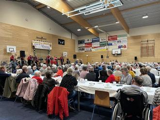 Dann kam der große Moment für Moritz und Karl. Moritz ist der jüngste Sohn von Katja Stoll, Karl ist der Sohn von Hanka, einer Trompeterin der Tollensetaler. Beide durften gemeinsam mit den „Großen“ den Marsch „Transformers“ von Alexander Pfluger spielen. Sichtlich stolz waren sie, nachdem der letzte Ton verklungen war. Das Publikum war ebenfalls begeistert. Anschließend gab es dann noch Schlager, Walzer und Polka von den Tollensetalern zu hören, was dem Publikum außerordentlich gut gefiel. Zur vorletzten Darbietung des Bläserfestes marschierten dann die Kartlower Schalmeien mit Musik in den Saal ein und begaben sich auf die Bühne.