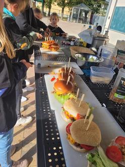 Mitte September waren für eine ausgeloste 3. Klasse die Grill Ninjas zu Gast. Gesponsort von der Sparkasse konnten sich die Kinder an der Zubereitung verschiedener Köstlichkeiten ausprobieren.