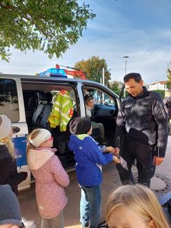Der Herbst startete in unserer Schule mit Frau Goos von der Polizei. Sie festigte das richtige Verhalten aller Erstklässler im Straßenverkehr.
