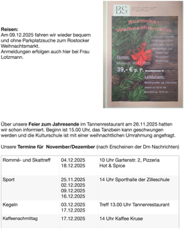 Unsere Termine für November/Dezember (nach Erscheinen der Dm Nachrichten)