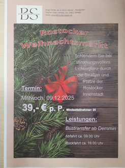 Am 09.12.2025 fahren wir wieder bequem und ohne Parkplatzsuche zum Rostocker Weihnachtsmarkt.