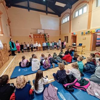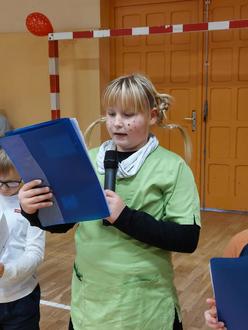 Die dritten Klassen entschieden sich für kleine Theaterstücke, die sie voller Freude vorspielten. Sie entführten die Zuschauer zum Heiligen „St. Martin“ sowie zum „stärksten und schönsten aller Wölfe“. Diese Beiträge endeten mit einem Märchenrätsel.