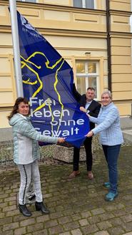 Die landesweite Aktionswoche „Wider Gewalt gegen Frauen und Kinder“ vom 25.11. - 01.12.2024 wurde mit dem Hissen der Fahne „Terre des Femmes“ durch den Bürgermeister der Hansestadt Demmin, Herrn Thomas Witkowski, der ehrenamtlichen Mitarbeiterin WEISSEN RING e. V., Frau Angelika Wiedemann-Rudolph und der Gleichstellungsbeauftragten der Hansestadt, Frau Rowena Delies, begonnen.
