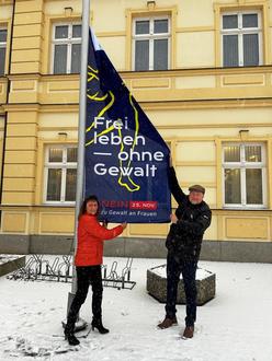 Die Woche vom 24. - 30.11.2025 ist die bundesweite Aktionswoche,,Wider Gewalt gegen Frauen und Kinder“. Sie wurde mit dem Hissen der Fahne,,Terre des Femmes“ durch den Bürgermeister der Hansestadt Demmin, Herrn Thomas Witkowski, und die Gleichstellungsbeauftragte der Hansestadt Demmin, Frau Rowena Delies, vor dem Rathaus begonnen.