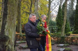 In seiner Ansprache bezeichnete der stellvertretende Vorsitzende des Volksbund-Regionalverbandes das Gedenken an die beiden großen Kriege des 20. Jahrhunderts und ihre zahllosen Opfer als „unsere humanitäre Verpflichtung“ und den Erhalt der Demokratie als wichtigsten Schutz gegen aktuelle negative Entwicklungen.