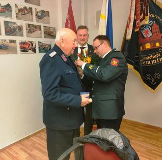 In Würdigung besonderer Verdienste im Brandschutz wurde dem Kameraden Oberbrandmeister Georg Schliwa für 60jährige treue Pflichterfüllung das Ehrenzeichen am Bande des Landes Mecklenburg-Vorpommern mit entsprechender Urkunde verliehen.