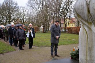 In seiner Ansprache betonte Bürgermeister Thomas Witkowski, dass Auschwitz das Synonym für den Massenmord der Nazis an Juden, Sinti und Roma und anderen Verfolgten und Ausdruck des Rassenwahns des deutschen Hitlerfaschismus ist.