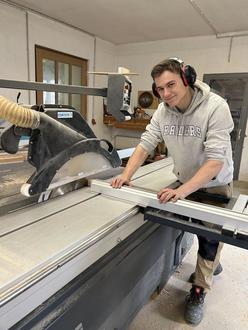 Nach bestandenem Lehrgang für die Formatkreissäge darf Paul diese nun auch bedienen