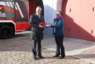Der Innenminister Christian Pegel betonte in seiner Rede, dass eine starke Schwerpunktfeuerwehr auch eine gute Ausstattung benötige. Deshalb war es richtig, sich hier für neue Technik zu entscheiden. Dies sei auch ein Ausdruck der Wertschätzung für die Demminer Kameraden. Diesen wünschte er allzeit gute Fahrt.