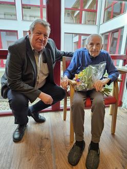 Das freute Demmins Präsidenten der Stadtvertretung Eckhardt Tabbert und den 1. stellvertretenden Bürgermeister Ronny Szabó, als sie am 09. April dieses Jahres die besten Wünsche des Bürgermeisters der Hansestadt Demmin, Thomas Witkowski, an den 97jährigen Karl Hehne überbringen durften. Man traf auf eine gemütliche Runde im AWO-Seniorenheim in der Beethovenstraße. Der geborene Schwichtenberger lebt seit 1964 in der Beethovenstraße. So ist es auch nicht verwunderlich, dass er und seine Frau Henny Marie Auguste, welche er im Jahr 1957 heiratete das AWO-Seniorenheim als ihren Altersitz auserkoren haben. Wünschen wir Herrn Hehne und natürlich auch seiner Frau weiterhin Gesundheit und Wohlergehen für die vor ihnen liegenden Ereignisse!