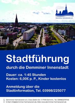 Die Archivsparte des Demminer Heimatverein e.V. bietet nun Stadtführungen in Demmin an. Der Startpunkt ist bei der Stadtinformation und führt einmal durch unsere Hansestadt, inklusive Kirchenbesichtigung. Die Stadtführungen werden von April bis voraussichtlich Oktober angeboten.