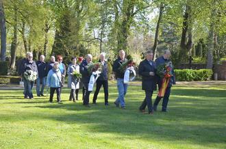 Auch in diesem Jahr gedachten Vertreter der Stadtgesellschaft und -politik den Opfern von Krieg, Verfolgung und Gewalt weltweit. Hierzu legten der Präsident der Stadtvertretung Eckhardt Tabbert, Bürgermeister der Hansestadt Demmin Thomas Witkowski, Vorsitzender des Volksbundes „Deutsche Kriegsgräberfürsorge e.V.“ Regionalverband Demmin Dr. Michael Koch, Geschäftsführer des Volksbundes „Deutsche Kriegsgräberfürsorge e.V.“ Regionalverband Demmin Jörg Küthe sowie Bernd Koltz, stellvertretender Fraktionsvorsitzender des IVDs, Fraktionsvorsitzende der UWG Kathrin Giebener–Trost, stellvertretender Fraktionsvorsitzender der CDU Herbert Frank und weitere Mitglieder des Stadtparlaments die Kränze am 45er Gräberfeld auf dem Friedhof in der Jarmener Straße nieder.