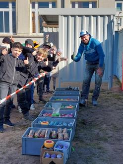 Auf Initiative des Schulfördervereins wurde die Grundierung schon im letzten Jahr von dem Malerbetrieb „Wolle“ aus Demmin übernommen. Alle benötigten Materialien für die Wand finanzierte die Hansestadt Demmin.