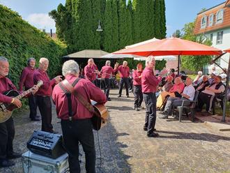 Die Hanzezangers halten Wort! Wie versprochen, erfreuten die bekannten Sänger aus Deventer/Holland auch in diesem Jahr am Sonntagvormittag traditionell alle Bewohnerinnen und Bewohner des Pflegeheimes Gertraudenstift mit ihrem Gesang. Bei herrlichem Sommerwetter, geschützt durch große Sonnenschirme, lauschten die Senioren im Freien den Ausführungen und der aufmunternden Musik der Gruppe, klatschten und schunkelten im Takt der Lieder mit. Aber auch Bürgermeister Thomas Witkowski sowie seine beiden Vorgänger, die Altbürgermeister Ernst Wellmer und Dr. Michael Koch, waren gekommen und sangen beim „Demmin-Lied“ kräftig mit. Regionalleiterin Birgitt Küthe dankte abschließend allen herzlich für den gelungenen Auftritt, überreichte ein paar Süßigkeiten und Erfrischungen zur Stärkung für die Rückfahrt und hofft, wie alle Anwesenden, auf ein gesundes Wiedersehen im nächsten Jahr. Die Zusage dafür gab es sofort.