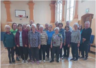 Ein Teil unserer sportlichen Damen und Herren in der Turnhalle der Zilleschule.