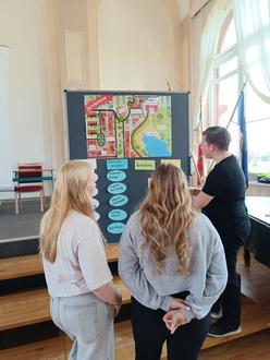 „Mit dem Spiel wollen wir jungen Menschen das Verständnis für kommunale Politik vermitteln und ihre Begeisterung wecken, sich für die lokale Politik zu interessieren und womöglich selbst zu engagieren“, sagt Wibke Seifarth, die gemeinsam mit Sarah Dittrich das Spiel anleitete.