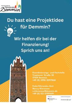 Und bitte vergessen Sie nicht die Möglichkeit, bei der Partnerschaft für Demmin einen Förderantrag für Ihr Projekt zu stellen. Wir beraten Sie gerne!