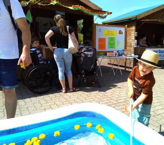 Vielfältig gab es auf dem Peenefest die Möglichkeit, zu gewinnen: Im Sport, auf dem Rummel, beim Genießen von Kultur und auch am Stand der Evangelischen Gemeinschaft. Hier konnten kleine und große Peenefestbesucher gegen einen Obolus aus einem Wasserbecken gelbe Quietsche-Enten keschern. Und für jede Ente erhielten sie einen Gewinn. Die Gewinne durften sie sich dann aus den vielseitigen Auslagen im Hüttenstand selbst aussuchen.