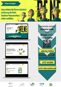 Damit so viele Bürgerinnen und Bürger mit einem kostenlosen Hausanschluss ausgestattet werden können, benötigen wir ihr Einverständnis. Wer die Erklärung dazu bis jetzt noch nicht ausgefüllt hat, kann das neuerdings ganz leicht online und papierlos unter www.rene-mv.de in unserem Shop erledigen. Dort hat man auch die Wahl zwischen RE.NE Bronze, Silber oder Gold und kann sich ganz einfach online den Zugang ins Regionale Glasfasernetz RE.NE sichern.