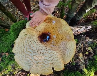 Bei wunderschönem Spätsommerwetter ging es in den Wald nach Lüttenhagen und bereits in den ersten Veranstaltungen gab es schon viel zu entdecken. In den Heiligen Hallen wurden Riesen-Buchen „vermessen“, große Pilze gefunden und umgestürzte Bäume untersucht.