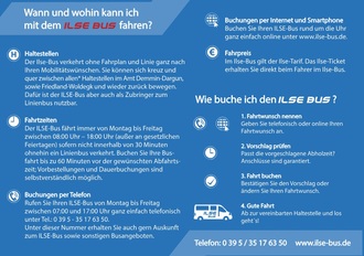 ILSE fährt also ohne Fahrplan und kann zusätzlich und ganz einfach, via Telefon, Internet oder per Smartphone über unseren QR-Code, gebucht oder vorbestellt werden.