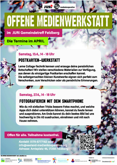 Schon im dritten Jahr nacheinander öffnet ab dem 13. April 2024 wieder die “Offene Medienwerkstatt” im JURi Gemeindetreff in Feldberg, alle 14 Tage jeweils am Samstag nachmittags von April bis Dezember.