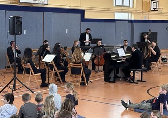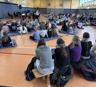 In der Turnhalle verwandelte sich der gewohnte Raum für Sport und Bewegung für 45 Minuten in einen Konzertsaal voller Fantasie, Musik und staunender Gesichter.